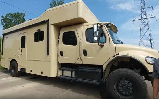 Τα τροχόσπιτα και συγκεκριμένα τα αυτοκινούμενα έχουν σκοπό να σε πηγαίνουν εκεί που θέλεις εσένα και ολόκληρη την οικογένειά σου. Ωστόσο, το “εκεί” που θέλεις αρκετές φορές δεν είναι εφικτό. Από την άλλη, το αυτοκινούμενο που βλέπετε στις φωτογραφίες και το βίντεο, έχει τις δυνατότητες να σε πάει σε τοποθεσίες που δεν θα μπορούσες με ένα… απλό όχημα της κατηγορίας να φτάσεις.
