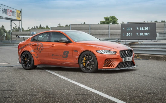 Σ’ αυτή τη κατηγορία ανήκει και η σκληροπυρηνική έκδοση της Jaguar XE SV, Project 8, η οποία, με χρόνο 7:18: 361, σημείωσε νέο ρεκόρ στην πίστα του Nurburgring, στην κατηγορία των τετράθυρων μοντέλων παραγωγής. Ειδικότερα, κατέρριψε κατά 2,9 δευτερόλεπτα το ρεκόρ που είχε καταγράψει η ίδια (7:21:23) τον Νοέμβριο του 2017.