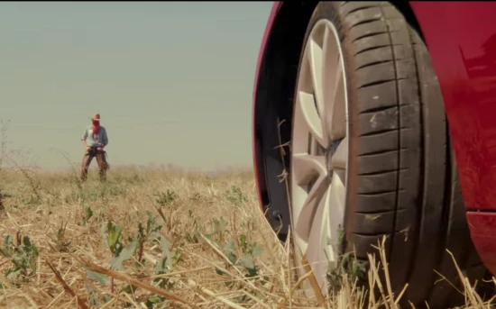 Οι διαφορές μεταξύ αυτοκινήτου και cowgirl δεν λύνονται δια των… όπλων, αλλά στο εσωτερικό του αυτοκινήτου, μέσω μίας παρτίδας σκάκι. Παρά τις φιλότιμες προσπάθειες της κοπέλας, το Tesla προβάλλει εξυπνότερο και ως εκ τούτου δεν αργεί να επέλθει το… ρουά ματ.