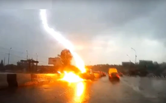 Δεν μπορούσαν να πιστέψουν στα μάτια τους οι οδηγοί σε αυτοκινητόδρομο της ρωσικής πόλης Νοβοσιμπίρσκ, όταν είδαν έναν κεραυνό να προσγειώνεται μόλις λίγα μέτρα δίπλα τους και συγκεκριμένα πάνω στην οροφή ενός Toyota RAV4.