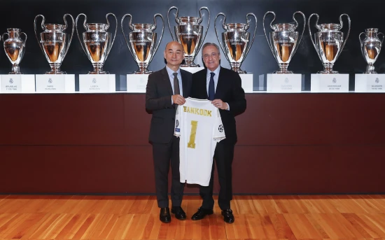 Η Hankook είναι παγκόσμιος εταίρος της Ρεάλ Μαδρίτης από 2016, ενώ πλέον θα έχει παρουσία και στην κεντρική LED οθόνη του γηπέδου. Τα δικαιώματα της Hankook επεκτείνονται στο θεσμό Copa del Rey, καθώς και σε διεθνείς αγώνες των επί 13 φορές πρωταθλητών Ευρώπης.