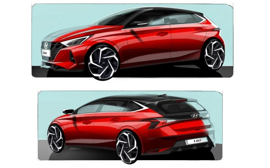 Τα επίσημα σκίτσα υποδεικνύουν ότι το νέο i20 θα έχει πιο δυναμική εμφάνιση από το τωρινό μοντέλο, χάρη στην «επιθετική» μάσκα, τις έντονες ακμές στο αμάξωμα, τα φωτιστικά σώματα που τονίζουν το πλάτος του αυτοκινήτου. Η μοντέρνα εικόνα του εσωτερικού χαρακτηρίζεται από το ψηφιακό ταμπλό, με δύο οθόνες 10,25 ιντσών, μία για τον πίνακα οργάνων και μία για το σύστημα πολυμέσων.