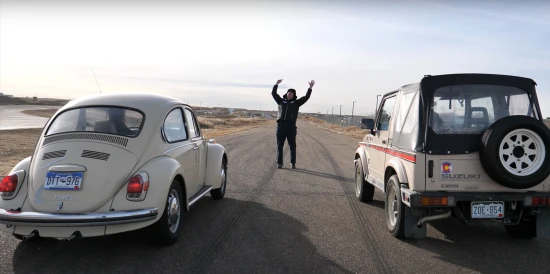 Εικόνα από το παρελθόν; Θα μπορούσε! Σίγουρα, μία κόντρα ανάμεσα σε ένα κλασσικό VW Beetle και ένα Suzuki Samurai της δεκαετίας του ’90 δεν εξιτάρει, αλλά αποδεικνύεται αμφίρροπη