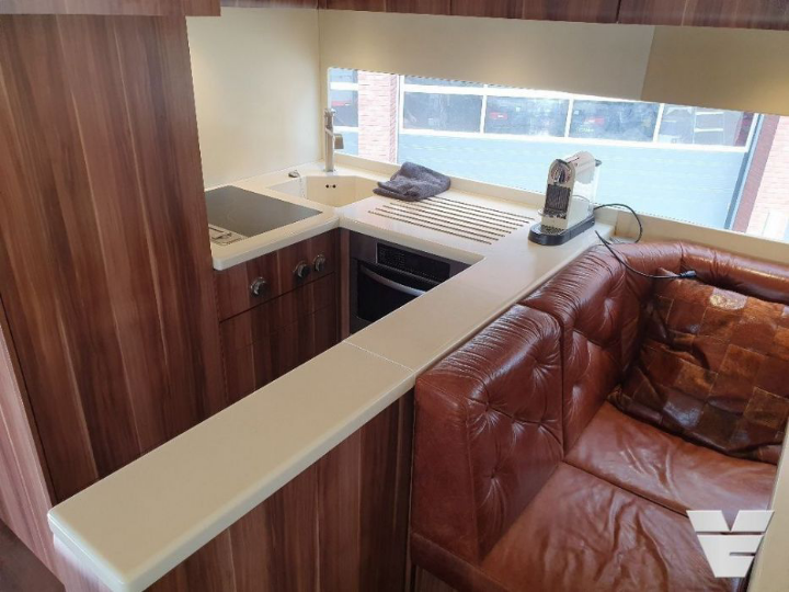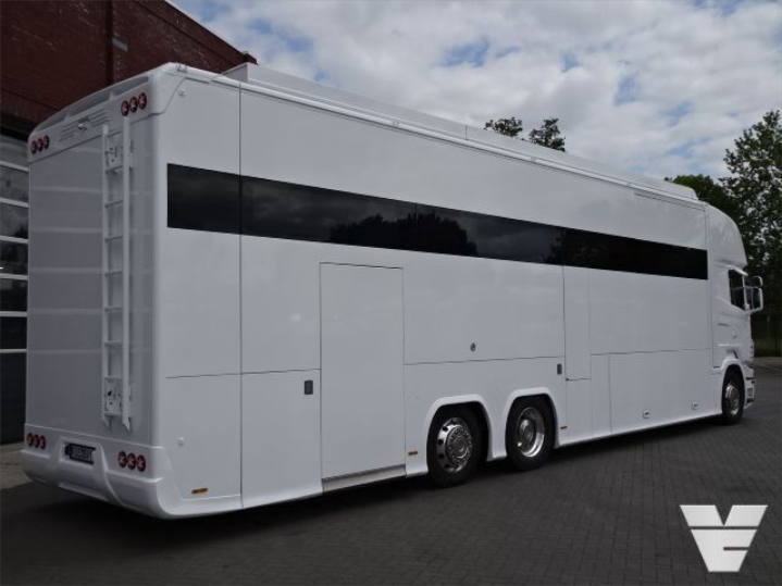 Μόνο 380.000 ευρώ και άδεια οδήγησης φορτηγού φτάνουν για να κάνετε τις πιο ιδιαίτερες διακοπές. Ο λόγος γίνεται για το εικονιζόμενο αυτοκινούμενο τροχόσπιτο. Με βάση ένα Scania R480 και πολλές τροποποιήσεις, τα αποτέλεσμα είναι ένα υπερπολυτελές πτυσσόμενο τροχόσπιτο με δερμάτινες και ξύλινες επενδύσεις, 3 δωμάτια, μπάνιο με ντους, κουζίνα, ψυγείο, φούρνο, ντουλάπες, δεξαμενή πόσιμου νερού, 3 οθόνες, θέρμανση, κλιματισμό, γεννήτρια και λίστα δεν έχει τέλος.