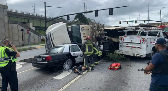 Φορτηγό τούμπαρε πάνω σε περιπολικό [Video]