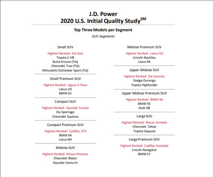 Στα τέλη Ιούνη δημοσιευτήκαν στοιχεία από την έρευνα του οργανισμού J.D. Power που διεξήχθη στην Αμερική, παρουσιάζοντας τα προβλήματα τα οποία έχουν οι ιδιοκτήτες με τα αυτοκίνητα τους. Πιο συγκεκριμένα, στην παρούσα έρευνα καταγράφονται τα μέρη ενός αυτοκινήτου που παρουσιάζουν βλάβη ή δυσλειτουργία, καθώς και το αν είναι δύσκολα στην χρήση τους, δύσκολα στην κατανόηση του τρόπου λειτουργίας τους ή δεν λειτουργούν όπως θα επιθυμούσε ο ιδιοκτήτης του οχήματος.