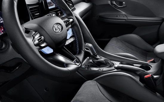 Τα καθίσματα είναι επενδεδυμένα με μαλακή ταπετσαρία Alacantara που μοιάζει με σουέτ για να συγκρατεί σταθερά τον οδηγό στη θέση του σε στροφές με υψηλές ταχύτητες. Όπως υποδηλώνει το όνομά τους, τα N Light Sports Bucket Seats διαθέτουν φωτιζόμενο λογότυπο N στην πάνω πλευρά της πλάτης του καθίσματος, όπου σε συνδυασμό με άλλους εσωτερικούς φωτισμούς παρέχουν μια μοναδική εσωτερική ατμόσφαιρα.