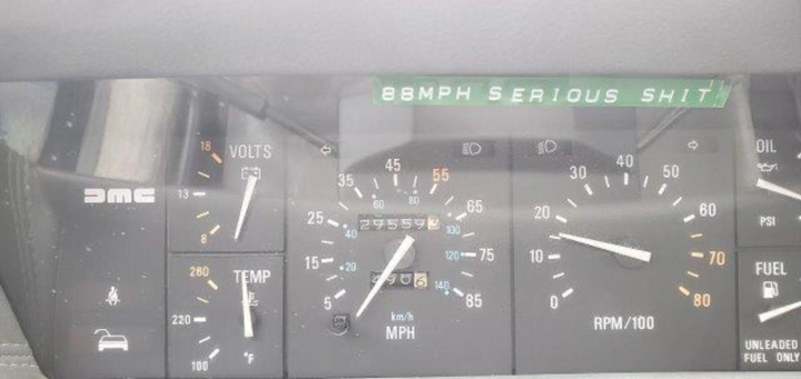 Τέλος βλέπουμε ένα DeLorean του 1981 βγαλμένο από την τριλογία Back to the Future. Από όλες τις προφανείς αλλαγες που έχουν γίνει για να μοιάζει με το αυτοκίνητο της ταινίας, δεν θα κρύψουμε πως η αγαπημένη μας είναι μία προειδοποίηση που έχει τοποθετηθεί στο κοντέρ και γράφει “88 mph serious shit”... Ο νοών νοείτω...