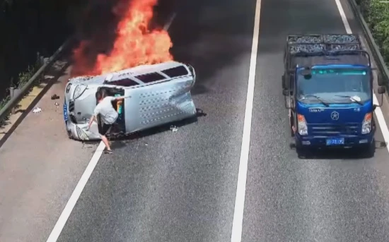 Δραματικές είναι οι σκηνές που εκτυλίχθηκαν πριν λίγες μέρες σε αυτοκινητόδρομο της Κίνας, όταν ένα μικρό όχημα τύπου βαν απέκλινε από την πορεία του μ’ αποτέλεσμα να χτυπήσει στα στηθαία ασφαλείας και να αναποδογυρίσει.