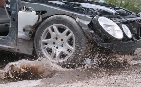 Τα πλάνα σε αργή κίνηση αποκαλύπτουν την ταλαιπωρία που βιώνουν λάστιχα, αμορτισέρ και πλαίσιο