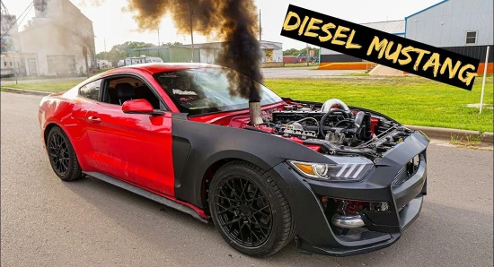Υπεύθυνος για την συγκεκριμένη «ασέλγεια» είναι ο YouTuber, Westen Champlin, ο οποίος πήρε ένα Ford Mustang τελευταίας γενιάς, αλλά απ’ ότι φαίνεται δεν του έκανε καμία από τις βενζινοκίνητες εργοστασιακές εκδόσεις. Αντίθετα, αποφάσισε να «στριμώξει» μέσα στο διάσημο μοντέλο, ένα Turbo πετρελαιοκινητήρα 5,9 λίτρων.