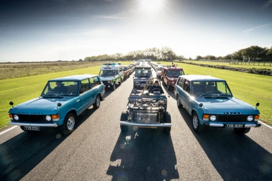 Οι δύο πρωτοστάτες της παρέλασης ήταν ένα λειτουργικό γυμνό σασί, το οποίο χρησιμοποιήθηκε ως παρουσίαση του αρχικού συστήματος τετρακίνησης τους Range Rover, την δεκαετία του ’70 και η τελευταία έκδοση περιορισμένης παραγωγής Range Rover “Fifty”, με αριθμό πλαισίου 1 από τα συνολικά 1970.