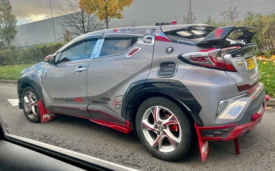 Ψεύτικους αεραγωγούς έχει τοποθετήσει όπου έχει λαμαρίνα, ακόμα και στις πίσω πόρτες. Δυστυχώς δεν υπάρχει φωτογραφία του εμπρός μέρους, σίγουρα θα είχαμε ακόμα περισσότερα να σχολιάσουμε και να δούμε. Αναμφίβολα ο ιδιοκτήτης αυτού του Toyota C-HR θέλει να ξεχωρίζει.