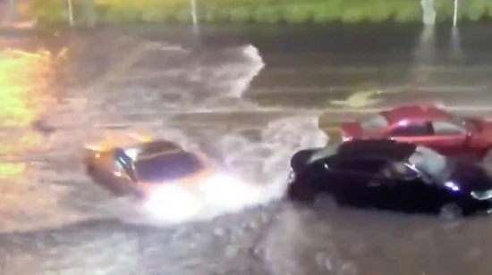 πλημμυρισμένο δρόμο της Φλόριντα που έμοιαζε με λίμνη...