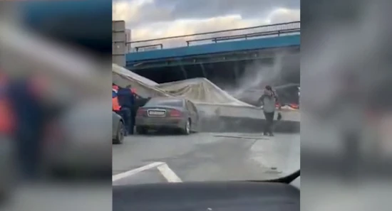 Γέφυρα πέφτει πάνω σε αυτοκίνητο μετά από σύγκρουση με μπετονιέρα [Video]