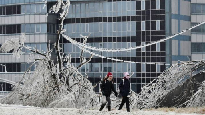 Σύμφωνα με τις αρχές, σε πολλά σπίτια το ρεύμα μπορεί να κάνει μέρες να αποκατασταθεί. Μετεωρολογικές υπηρεσίες λένε πως η σύγκρουση δύο καταιγίδων, μίας που έφερε ζεστό αέρα και μίας με παγωμένο, είχε ως αποτέλεσμα την παγωμένη βροχή της Πέμπτης. Το πάχος του πάγου πάνω στα δέντρα και τις κολώνες ηλεκτροδότησης έχει φτάσει τα 1,2 εκατοστά. Πρόκειται για φαινόμενο, που έχουν να το δουν για πάνω από 30 χρόνια.