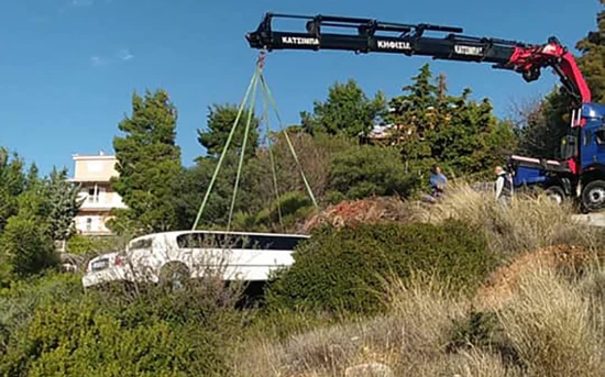 γκρεμό στην περιοχή της Πεντέλης. Η λιμουζίνα γλύστρισε από