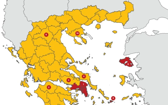 Κορονοϊός: Αυτός είναι ο νέος χάρτης με τις κίτρινες και κόκκινες περιοχές