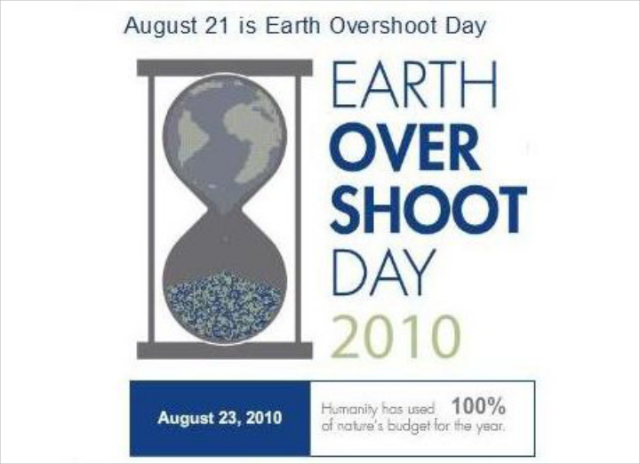 Η 21η Αυγούστου είναι μέρα σταθμός για τη Γη το 2010. Καταναλώσαμε ήδη τους πόρους που ο πλανήτης μπορεί να παράγει σε μια χρονιά. Όπως αναφέρει σε έρευνά της η Μη Κυβερνητική Οργάνωση Global Footprint Network, από το Σάββατο 21 Αυγούστου και έως το τέλος του χρόνου ο πληθυσμός της Γη θα ζει με πίστωση φυσικών πόρων.