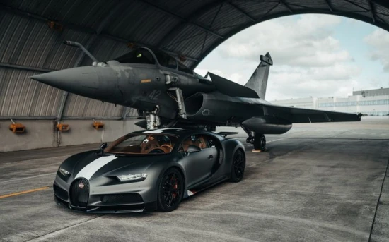 Η ίδια η Bugatti, τιμώντας τις γαλλικές της ρίζες, επέλεξε να διοργανώσει μια μικρή κόντρα ανάμεσα στη Chiron Sport και το Dassault Rafale, πολεμικό αεροσκάφος που κατασκευάζεται από τη Γαλλία. Αν και η Chiron Sport μπορεί να ξεπεράσει τα 400 χλμ./ώρα, δεν υπάρχει κανένα νόημα να γίνει σύγκριση ανάμεσα στη μέγιστη ταχύτητα που μπορούν να επιτύχουν τα δύο αυτά μηχανοκίνητα δημιουργήματα.