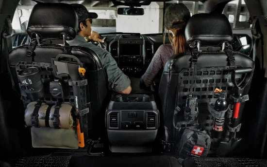 Δένει με ιμάντες στο κάθισμα του αυτοκινήτου χωρίς να επηρεάζει σημαντικά το χώρο για τα πόδια των πίσω επιβατών και λύνει τα χέρια όσων ασχολούνται με δραστηριότητες όπως το airsoft, το κυνήγι, το ψάρεμα κλπ.