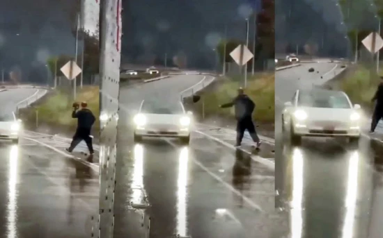 Ένας περαστικός πέταξε μια μεγάλη πέτρα στο εμπρός τζάμι του Tesla. «Εκδίκηση» ή τυχαίο γεγονός;