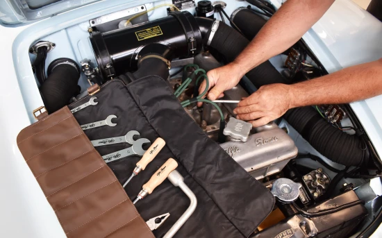 Γνωστή για τη μοναδική αίσθηση στιλ και φινέτσας σε κάθε έκφραση της, η Alfa Romeo, δεν θα μπορούσε παρά να ντύσει το συλλεκτικό κιτ εργαλείων με μια εξίσου κομψή θήκη. Τα 10 εργαλεία του κιτ φιλοξενούνται σε μια δερμάτινη θήκη με κλασσικό στιλ και το λογότυπο της Alfa Romeo Classiche.