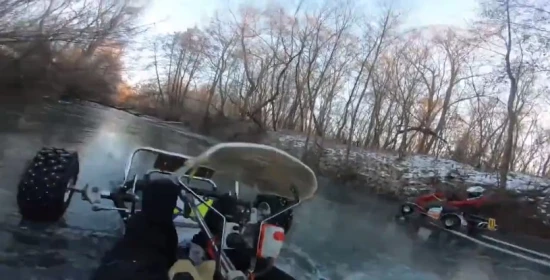 Δύο προφανώς ατρόμητοι νεαροί πήραν τα καρτ τους, πήγαν μέχρι έναν παγωμένο ποταμό, αλλά τα πράγματα δεν εξελίχθηκαν και πολύ καλά.