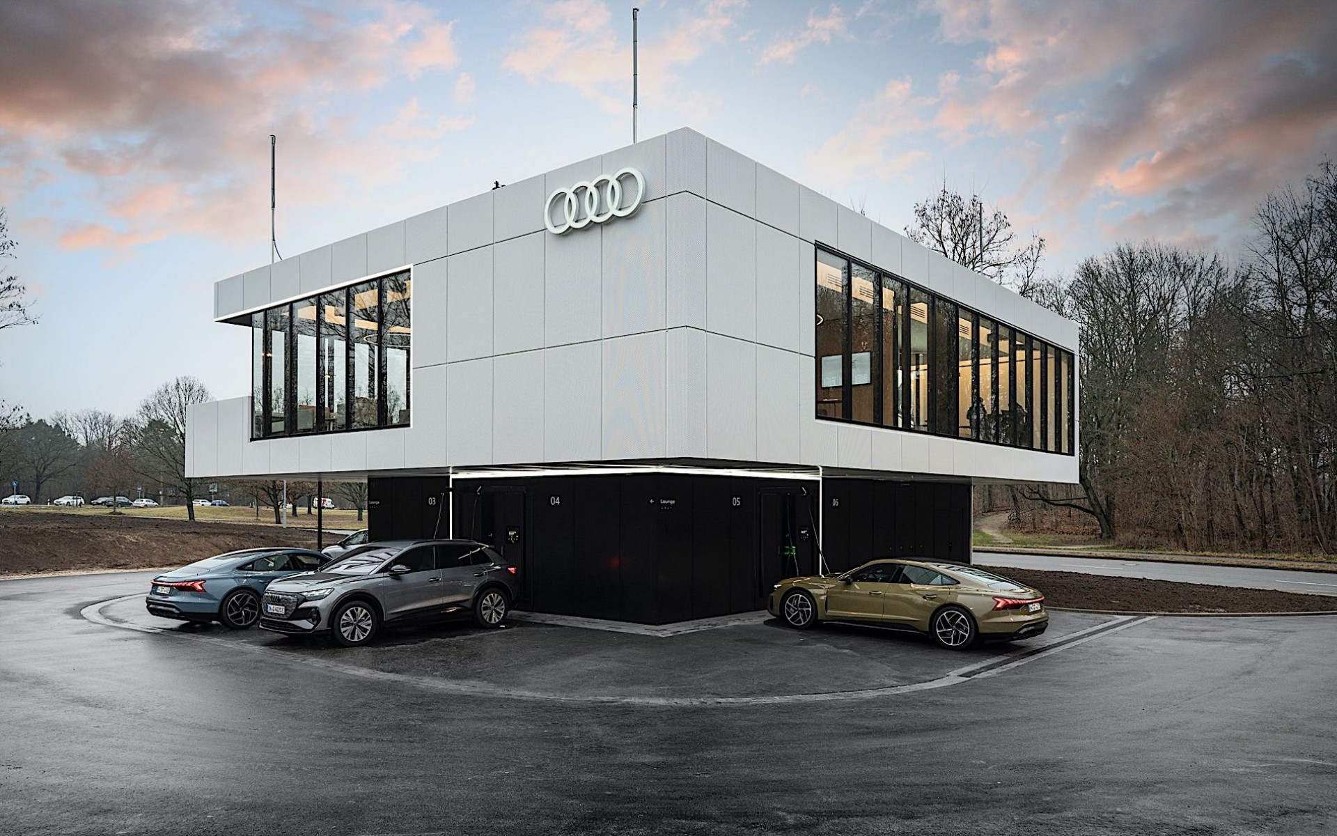 Ο κόμβος δημόσιας φόρτισης της Audi ξεκίνησε πιλοτικά τη λειτουργία του στο Εκθεσιακό Κέντρο της Νυρεμβέργης από τις 23 Δεκέμβρη. Ο ιδιοκτήτης ενός Audi μπορεί να κάνει κράτηση για μια από τις έξι διαθέσιμες θέσεις φόρτισης και η ισχύς του κάθε φορτιστή, ανέρχεται στα 320 kW. Παρκάρει, συνδέει το όχημα με το δίκτυο και μπαίνει στο ειδικά διαμορφωμένο lounge.