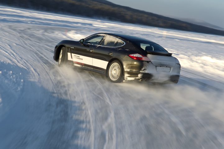 χειρισμό μιας Porsche σε συνθήκες πάγου και χιονιού, σε μια
