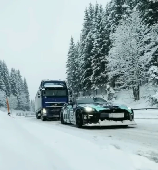 Nissan GT-R ρυμουλκεί νταλίκα στα χιόνια [video]