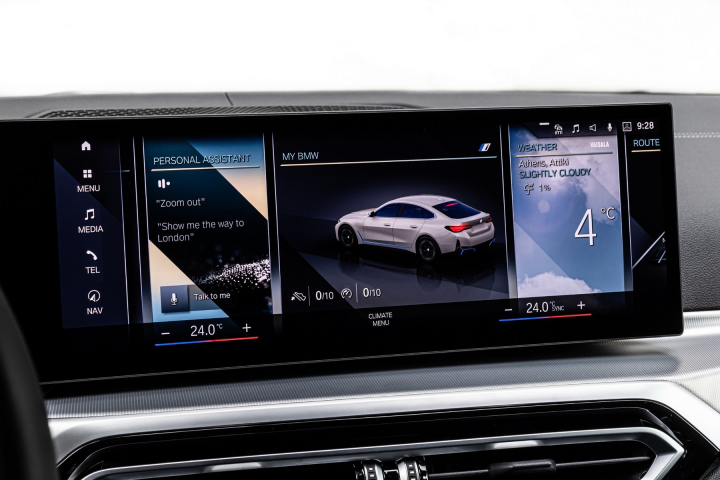 Η νέα γενιά του συστήματος απεικόνισης και ελέγχου/λειτουργίας iDrive που τοποθετείται για πρώτη φορά στην i4 επεκτείνει την αλληλεπίδραση μεταξύ οδηγού και οχήματος σε φυσικό διάλογο. Βασίζεται στο νέο BMW Operating System 8 και έχει σχεδιαστεί με ξεκάθαρη έμφαση στη λειτουργικότητα οθόνης αφής του BMW Curved Display και στη λεκτική επικοινωνία με τον εκτενώς αναβαθμισμένο ψηφιακό βοηθό - BMW Intelligent Personal Assistant.