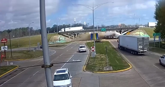 Στην πόλη Rayne της Λουϊζιάνα των ΗΠΑ, σημειώθηκε ένα τρομακτικό ατύχημα, εξαιτίας της κόπωσης. Ο οδηγός της νταλίκας αποκοιμήθηκε στο τιμόνι σύμφωνα με τις πρώτες ενδείξεις της αστυνομίας, με αποτέλεσμα το βαρύ όχημα να βγει εκτός του αυτοκινητοδρόμου, να κατέβει τον λοφίσκο με τρομερή ταχύτητα και να περάσει ανεξέλεγκτο τον δρόμο κάτω από τη γέφυρα.