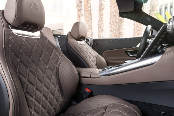 Στο εσωτερικό η πολυτέλεια συναντά την κομψότητα, χωρίς να λείπει η σπορ φιλοσοφία. Η υφασμάτινη οροφή με την τριπλή επίστρωση ανοίγει και κλείνει με τη χρήση ενός κουμπιού σε 15 sec. Φυσικά, δεν λείπουν οι ψηφιακές οθόνες 11,9 και 12,3 ιντσών του συστήματος πολυμέσων MBUX, το τιμόνι AMG και όλες οι τεχνολογίες υποβοήθησης.
