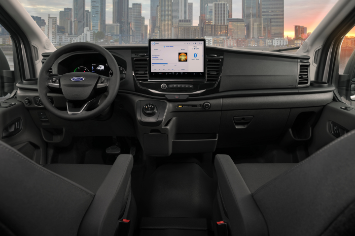 Το E-Transit εισάγει το σύστημα επικοινωνίας και πληροφοριών SYNC 4 στη γκάμα επαγγελματικών οχημάτων της Ford στην Ευρώπη, που προσφέρει διπλάσια υπολογιστική ισχύ από το SYNC 3 και ελέγχεται μέσω μιας ανθεκτικής, αντιθαμβωτικής και διαισθητικής στη χρήση οθόνης αφής 12 ιντσών.