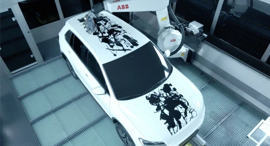 Σε συνεργασία με καλλιτέχνες δημιουργήθηκαν δύο σχέδια τα οποία στην συνέχεια τα ρομπότ θα έβαφαν πάνω στην επιφάνεια ενός οχήματος με απόλυτη ακρίβεια. Παρά την περίπλοκη φύση και των δύο σχεδίων, η τεχνολογία της ABB μπόρεσε να τα αποτυπώσει με απόλυτη ακρίβεια και χωρίς την παραμικρή ανθρώπινη παρέμβαση σε λιγότερο από 30 λεπτά το κάθε ένα. Η ταχύτητα αυτή οφείλεται στα 1.000 ακροφύσια που βρίσκονται στην κεφαλή του εκτυπωτή, τα οποία μπορούν να εφαρμόσουν το χρώμα τόσο κοντά στην επιφάνεια που γίνεται με απόλυτη ακρίβεια και χωρίς να λερώνεται τίποτα άλλο εκτός από το σημείο που βάφεται. Αυτό από μόνο του επιτρέπει στις αυτοκινητοβιομηχανίες να μειώσουν κατά 60% τον χρόνο και το κόστος που χρειάζεται για την βαφή ενός οχήματος.