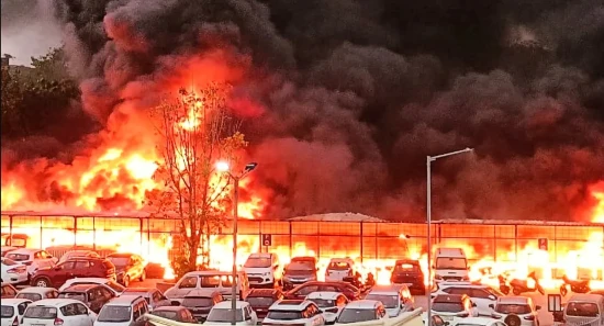 Οι εικόνες είναι συγκλονιστικές. Ένα τεράστιο σύννεφο καπνού έπνιξε την περιοχή, με 100 ηλεκτρικά αυτοκίνητα να μετατρέπονται σε ελάχιστα λεπτά σε αποκαΐδια.