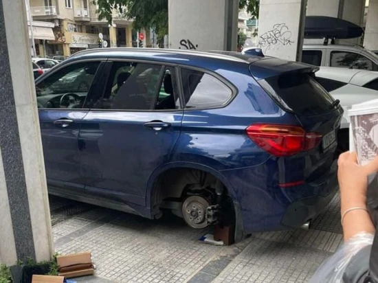 Video: Η στιγμή που κλέβουν τους τροχούς από τη BMW του αντιδημάρχου Θεσσαλονίκης