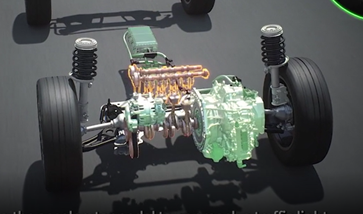 Ο θερμικός κινητήρας συνδυάζεται με δύο ηλεκτροκινητήρες. Ο πρώτος είναι τύπου BSG (Belt-Driven Starter Generator) και έχει σαν βασικό ρόλο την εκκίνηση του κινητήρα κατά τη διαδικασία του stop&start, ενώ λειτουργεί και σαν γεννήτρια για τη φόρτιση του συστήματος. Ο δεύτερος ηλεκτροκινητήρας βρίσκεται μεταξύ του θερμικού κινητήρα και του αυτόματου κιβωτίου ταχυτήτων. Είναι εξαιρετικά συμπαγής, έχει κοινό σύστημα λίπανσης με το κιβώτιο και το κυριότερο έχει απόδοση 15kW (περίπου 20 ίπποι) και 135Nm ροπής, χαρακτηριστικά που του επιτρέπουν να κινεί το όχημα χωρίς της αρωγή του θερμικού κινητήρα.
