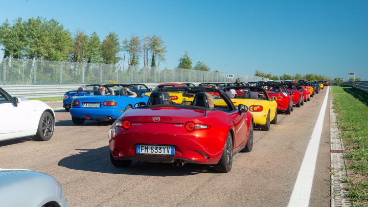 Στην «παρέλαση» βρέθηκαν μαζί και οι τέσσερις γενιές του εμβληματικού MX-5. Πραγματοποίησαν το γύρω της διάσημης πίστας υπό την επίβλεψη του κριτή του Παγκόσμιου Ρεκόρ Guinness, ο οποίος στις 18:00 επισημοποίησε το ρεκόρ, δίνοντας χαρά σε χιλιάδες οπαδούς του MX-5 από ολόκληρη την Ιταλία και την Ευρώπη. Το μοναδικό αυτό ράλι έδωσε στην ομάδα της Mazda Ιταλίας την ευκαιρία να προσθέσει ένα σημαντικό κεφάλαιο στην ιστορία του roadster με τις μεγαλύτερες πωλήσεις στον κόσμο.