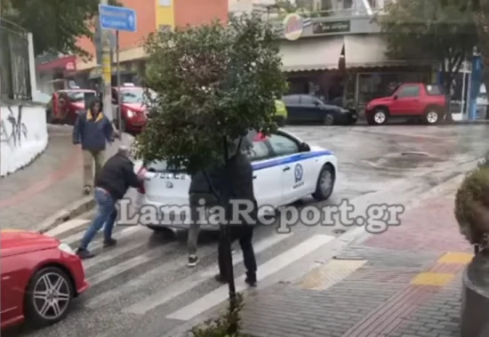 Λαμία: Σπρώχνουν το περιπολικό γιατί δεν έχει λάστιχα – Δείτε το video