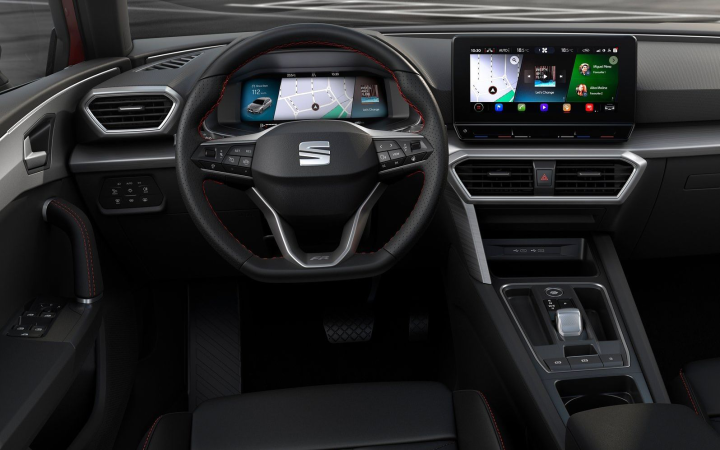 Φυσικά, αναφερόμαστε στην τέταρτη γενιά του SEAT Leon. Με πολύ όμορφη σχεδίαση, πολλές εκδόσεις για να διαλέξει ο υποψήφιος αγοραστής και υψηλή ευρυχωρία χάρη στην πλατφόρμα MQB στην οποία βασίζεται, το ισπανικό μικρομεσαίο τικάρει όλα τα σωστά κουτάκια. Αυτή τη φορά επιλέξαμε την πιο προσιτή αυτόματη εκδοχή του, με τον ήπια υβριδικό τρικύλινδρο turbo βενζινοκινητήρα 1.0 eTSI. Αποδίδει 110 ίππους και συνδυάζεται με το γνωστό επτατάχυτο αυτόματο σασμάν διπλού συμπλέκτη.