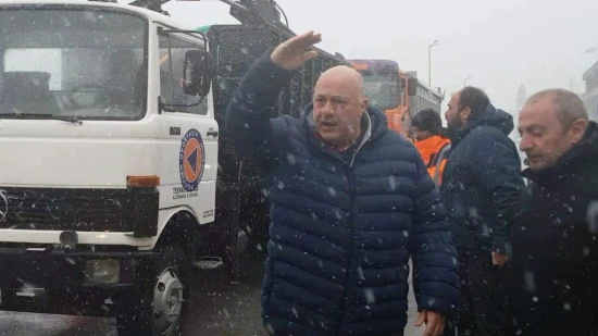 Απολαυστικός για μια ακόμη φορά ο δήμαρχος Βόλου, κυνηγά τα εκχιονιστικά μηχανήματα στους δρόμους της πόλης.
