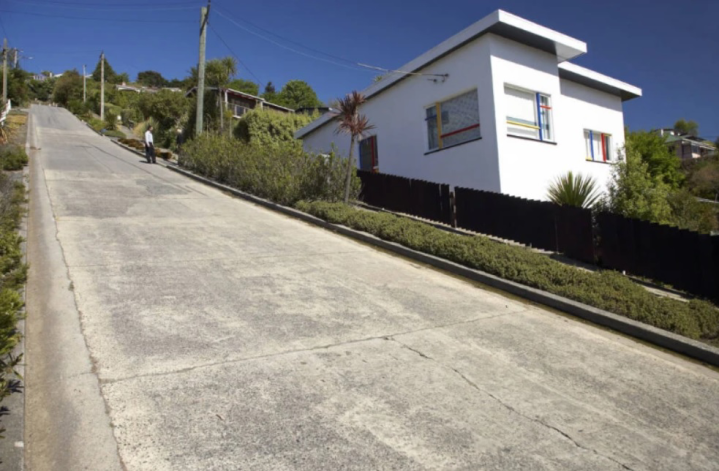 Βρίσκεται στη Νέα Ζηλανδία και ονομάζεται Baldwin Street. Έχει μπει στο Βιβλίο των Ρεκόρ Γκίνες χάρη στην απότομη κλίση του, η οποία αγγίζει το 35% σε ορισμένα σημεία! Μάλιστα, δεν έχει καλυφθεί με άσφαλτο αλλά με ειδικό μπετό, για να μην υπάρχει ο κίνδυνος να λιώσει η πίσσα και να κυλίσει σαν λάβα στην κατηφόρα. Επίσης, η επιφάνεια διαθέτει ειδική επίστρωση για επιπλέον πρόσφυση στα ελαστικά των αυτοκινήτων. Περιττό να αναφέρουμε, ότι ο δρόμος ανήκει πλέον στα αξιοθέατα της περιοχής! Εδώ μπορείτε να δείτε περισσότερα.