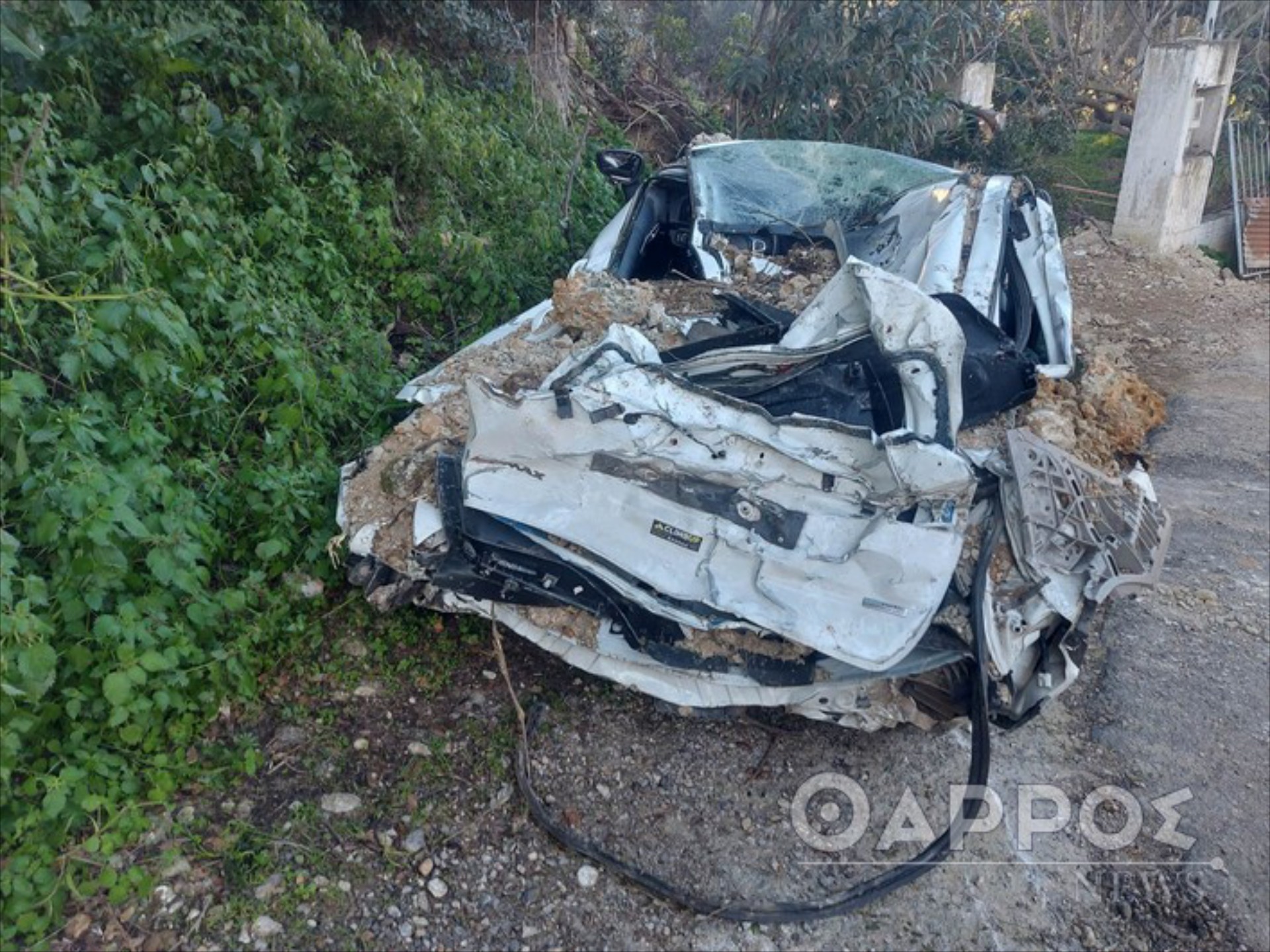 Καλαμάτα: Μαμά και παιδί σώθηκαν από θαύμα – Βράχος διέλυσε το αυτοκίνητο [video]