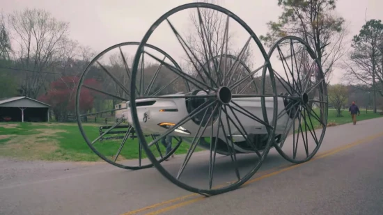 Ωστόσο, η έμπνευση για την πιο εντυπωσιακή δοκιμασία ήρθε από ένα τηλεκατευθυνόμενο αυτοκινητάκι το οποίο έχει αρκετά μεγάλους τροχούς ώστε να μπορεί να κινηθεί χωρίς να έχει συγκεκριμένη «πάνω» και «κάτω» μεριά. Έτσι, αντικατέστησαν τους τροχούς ενός Model 3 με αυτοσχέδιες ρόδες… κάρου με διάμετρο 3 μέτρων. Έτσι, η απόσταση από το έδαφος αυξήθηκε τόσο ώστε μια… Ferrari F8 Tributo να χωράει πλέον κάτω από το Tesla, ενώ το αυτοκίνητο μπορεί να οδηγηθεί και ανάποδα, χωρίς η οροφή του να αγγίζει το έδαφος.