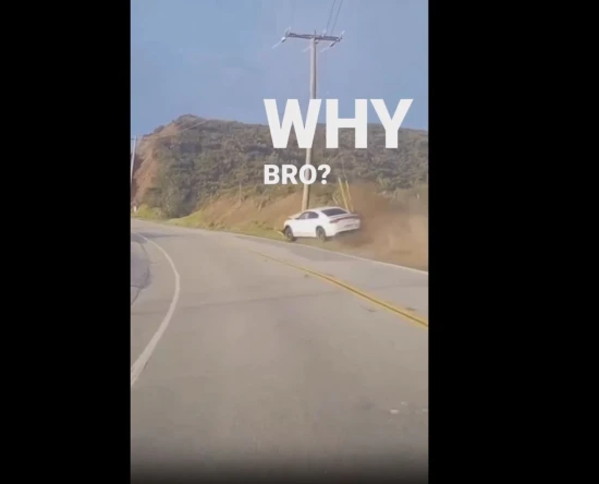 Θεωρώντας πως οδηγεί σε πίστα και όχι σε δημόσιο δρόμο, ο οδηγός του Dodge επιχειρεί να μπει στην στροφή με τέρμα το γκάζι. Τα πράγματα πάνε στραβά πολύ γρήγορα όμως, με τον οδηγό να χάνει τον έλεγχο του sportcar, να μπαίνει στο αντίθετο ρεύμα και να πέφτει σε έναν στύλο τροφοδοσίας.