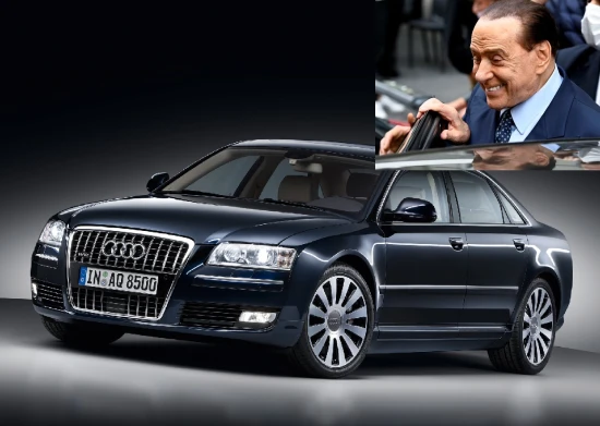 Άφηνε στην άκρη τα φαντεζί δημιουργήματα εταιρειών όπως η Ferrari, η Lamborghini ή η Maserati και έδειχνε ξεκάθαρη προτίμηση σε κατασκευές που ταιριάζουν περισσότερο στο προφίλ ενός επιτυχημένου businessman. Φυσικά αναφερόμαστε σε Γερμανούς κατασκευαστές όπως είναι η Audi, η Mercedes-Benz και η BMW, με τον Berlusconi να χρησιμοποιεί μοντέλα των εν λόγω μαρκών για τις επίσημες μετακινήσεις του.