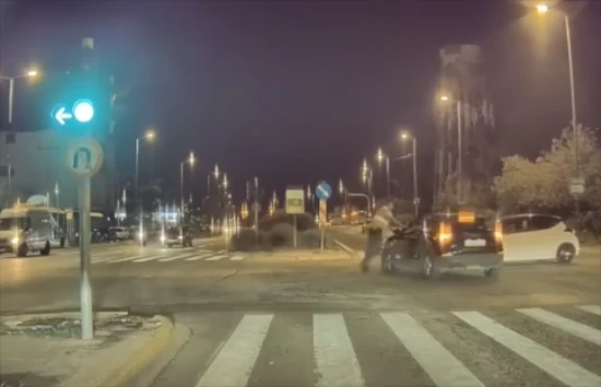 Ο τροχονόμος πηγαίνει κοντά του και τότε αυτός επιταχύνει για να περάσει. Το όργανο της τάξης αδυνατεί να τον σταματήσει, γλυτώνοντας παρά τρίχα τον τραυματισμό. Στη συνέχεια τρέχει, πιθανότατα για να δώσει σήμα να τον συλλάβουν, έχοντας προφανώς καταγράψει την πινακίδα κυκλοφορίας.