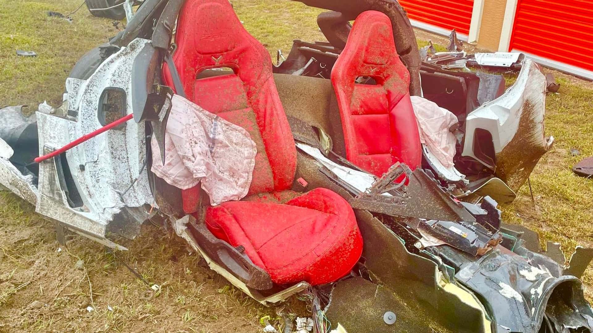 Ο οδηγός της Corvette εκτινάχθηκε 47 μέτρα μακριά και επιβίωσε. Από το αυτοκίνητο δεν έμεινε κυριολεκτικά τίποτα.